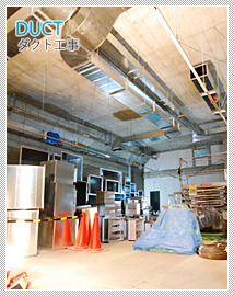オフィスビルや病院等の空調ダクト、厨房等の換気ダクト、デパート等の防災に用いる排煙ダクトなど幅広い使用用途のダクト工事に対応し、現場搬入から取り付け工事まで責任施工で承ります。